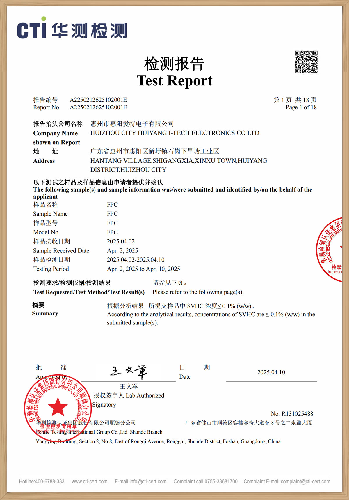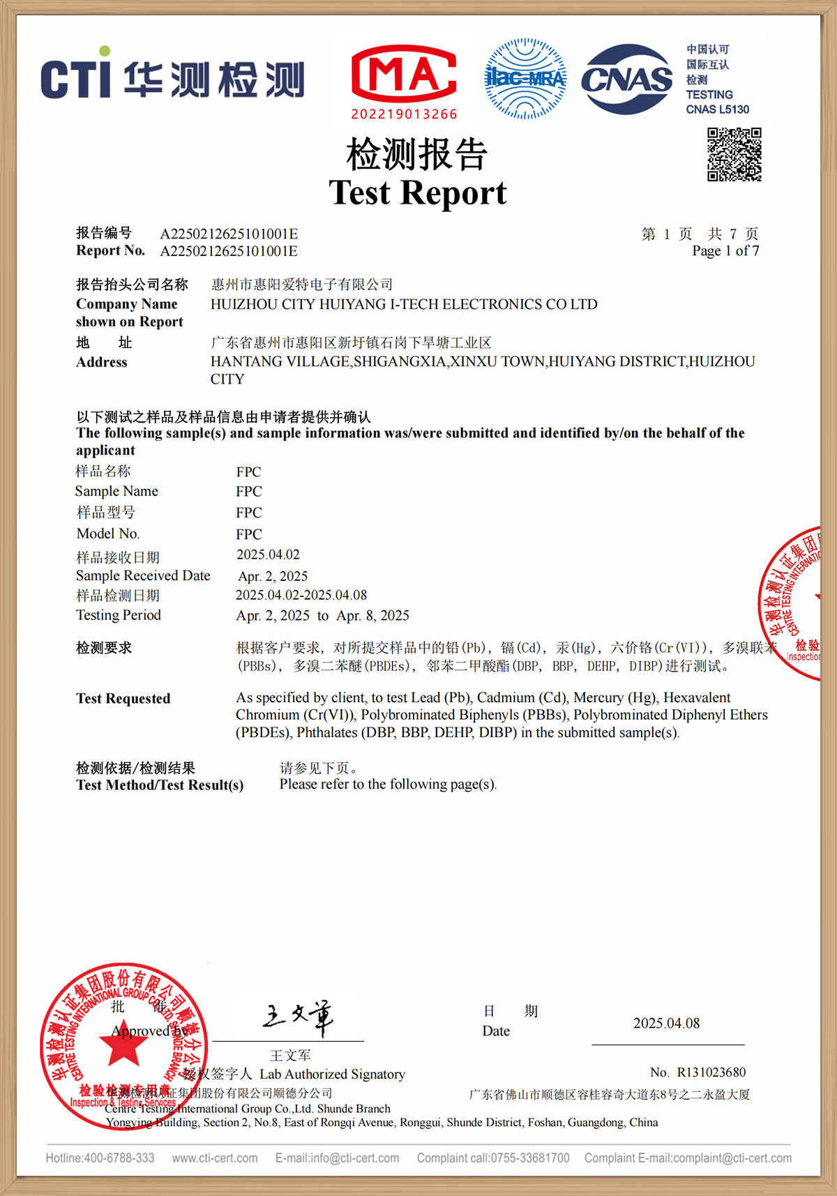 華測檢測報告