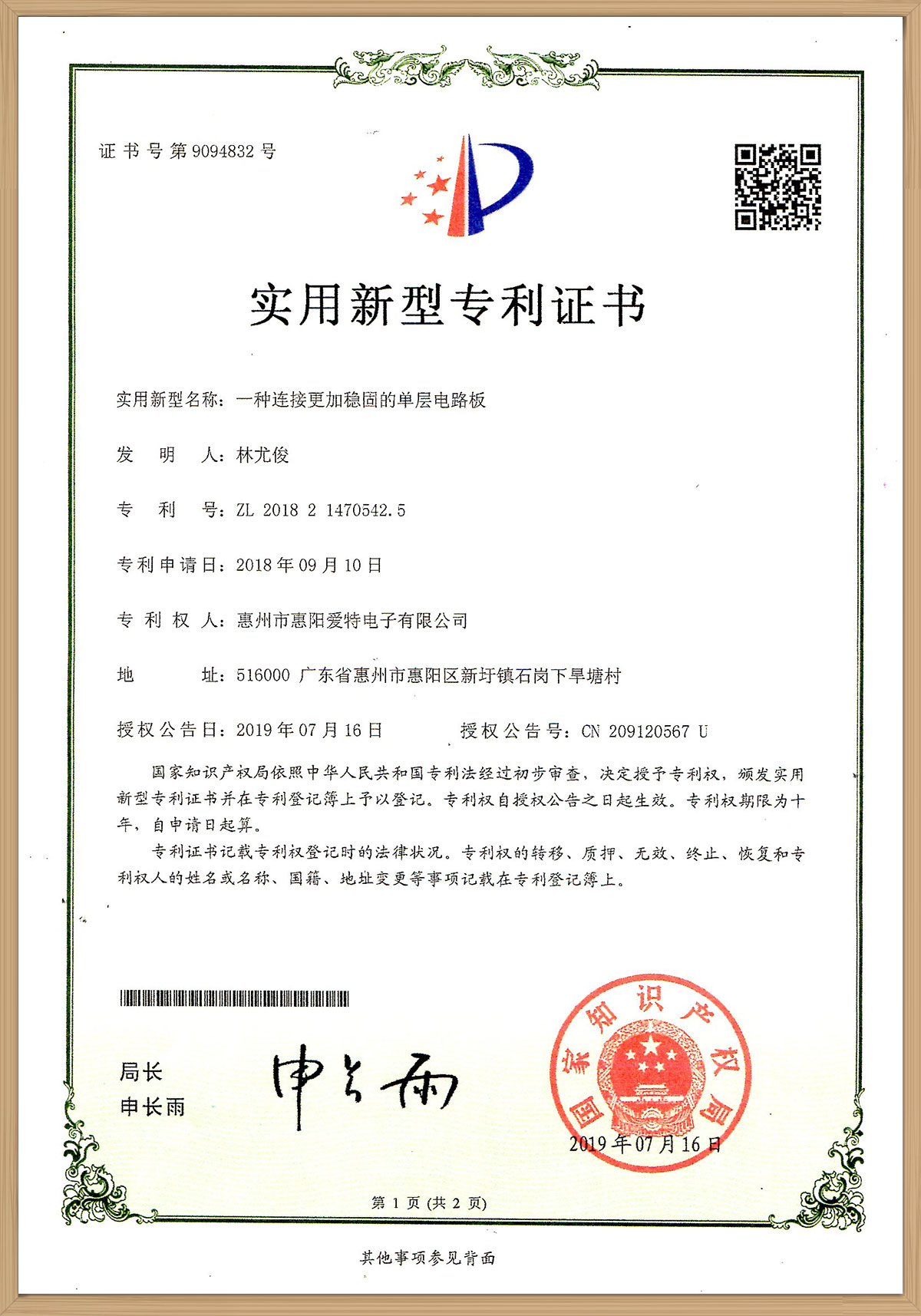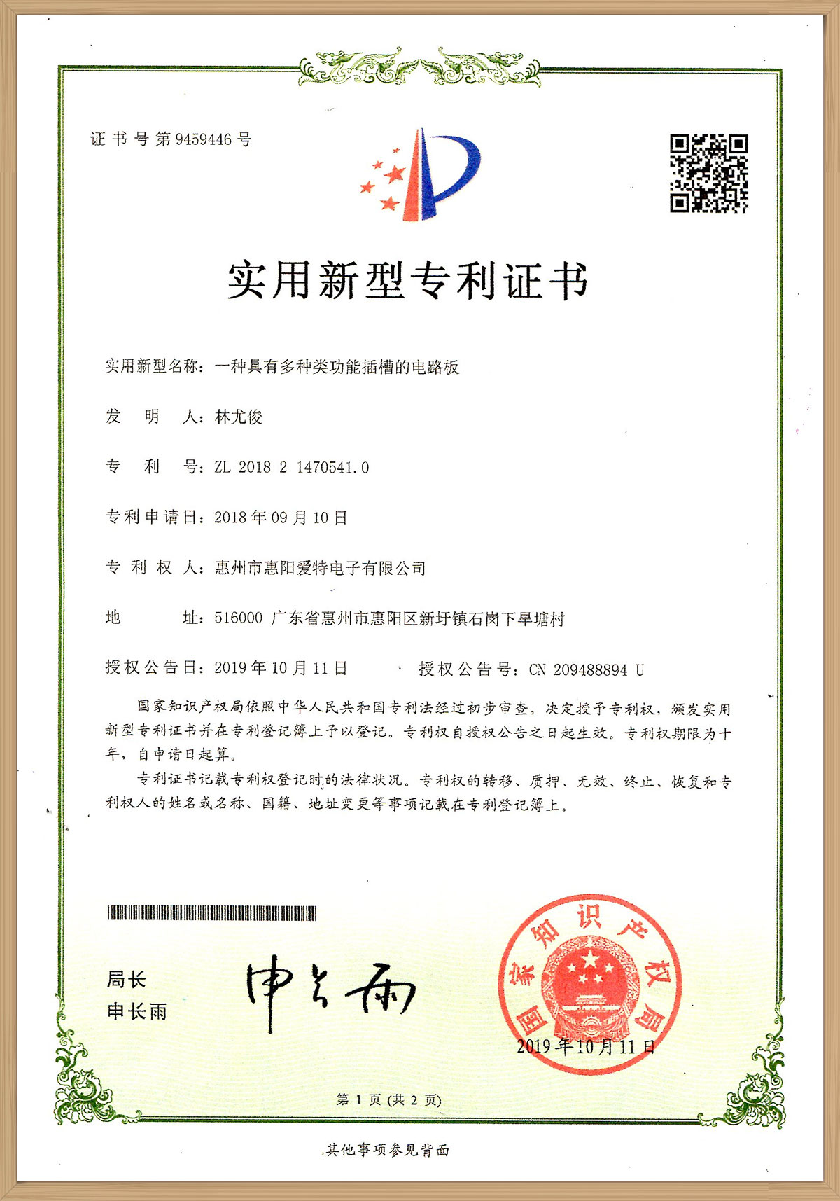 惠陽愛特電子近期獲得體系概述